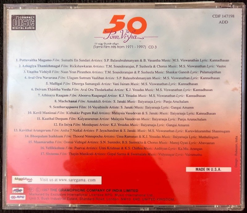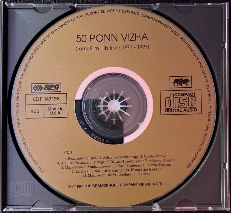 50 Ponn Vizha (Tamil Film Hits From 1971 – 1997) Tamil Audio CD Conditions