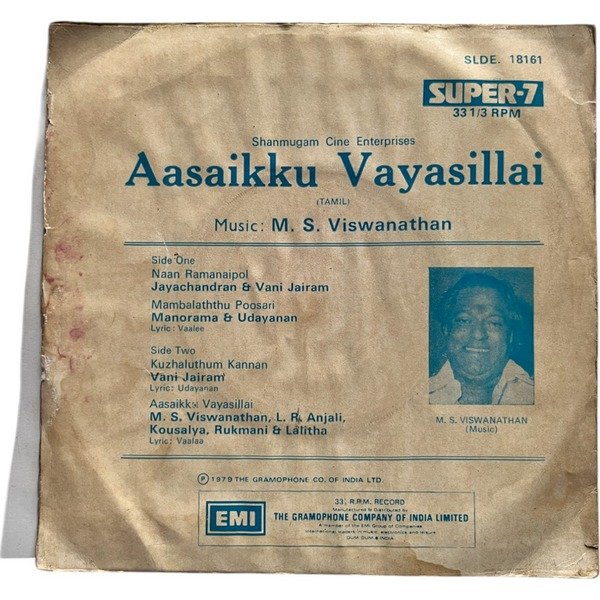 Aasaikki Vayasillai Tamil EP Vinyl Records By MSV