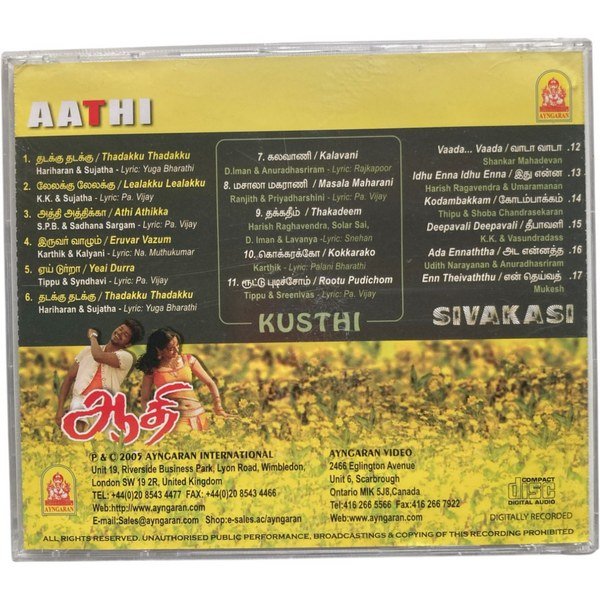 Aathi .Sivakasi ,Kusthi Tamil Audio Cds By VIdyasagar, Imman ,Srikanth deva