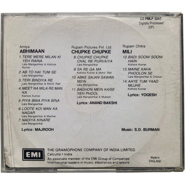 Abhiman, Chupke Chupke, Mili Hindi Audio Cds By SD Burman