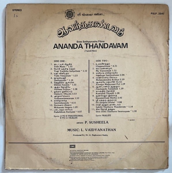 Ananda Thandavam Tamil LP Vinyl Record Condition:
