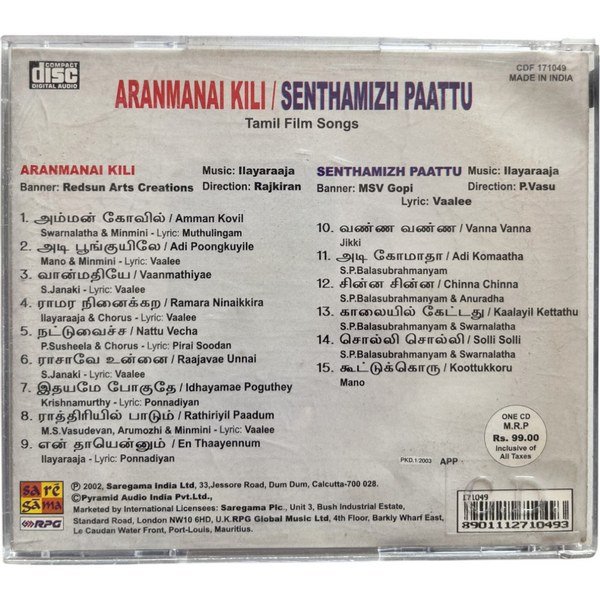 Aranmanai Kili, Senthamil Paattu Tamil Audio CD Condition