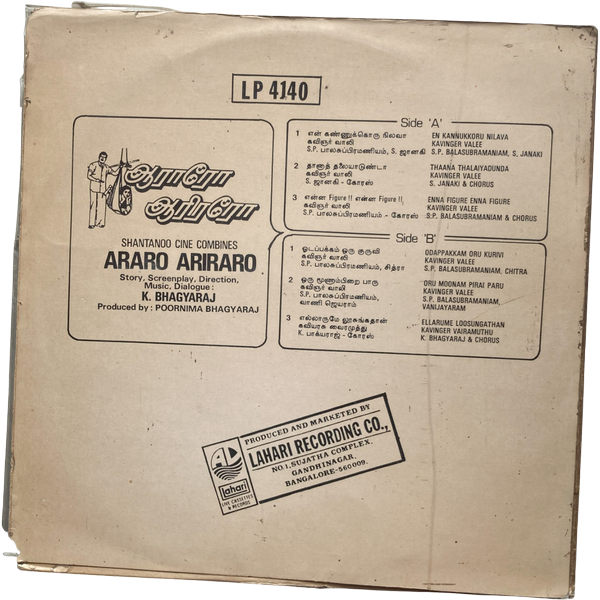 Araro Ariraro Tamil LP Vinyl Records By K Bhagyaraj