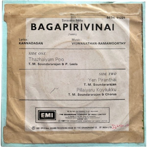 Bagapirivinai Tamil EP Vinyl Records By Viswanathan Ramamoorthy
