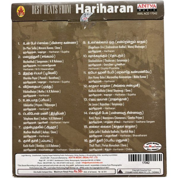 Best Beats From Hariharan Vol-1Tamil Audio CDs Condition