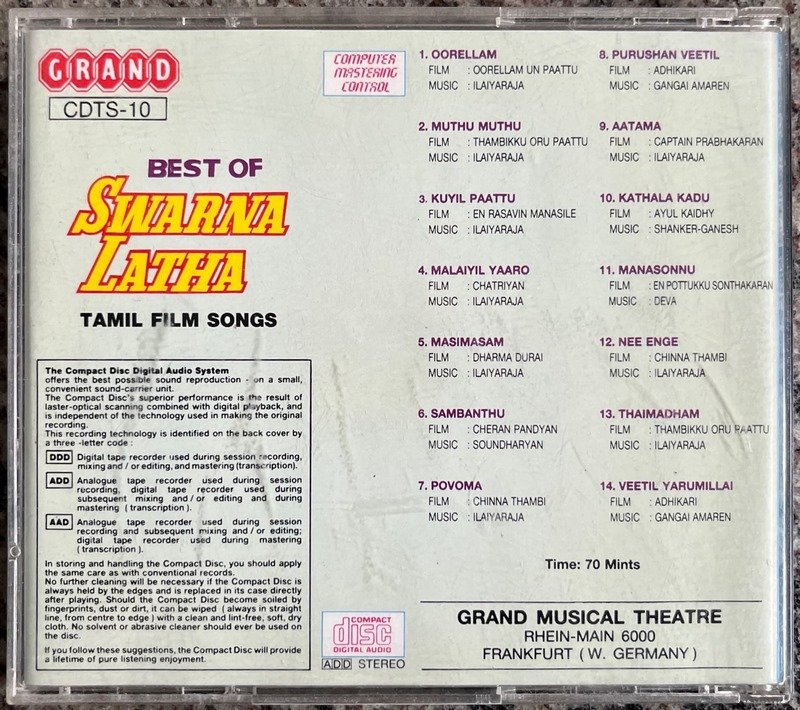 Best Of Swarnalatha Tamil Audio CD Conditions