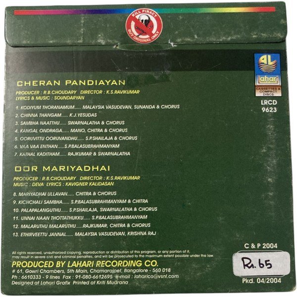 Perfect for collectors of vintage Tamil movie songs.