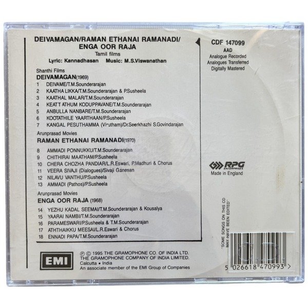 Deivamagan, Raman Ethanai Ramanadi, Enga Ooru Raja Tamil Audio CDs By M.S Viswanathan