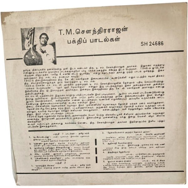 Devotional Songs By TMS Tamil LP Vinyl Records Condition: