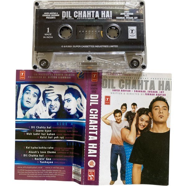 🎧 Original audio cassette of Dil Chahta Hai, featuring iconic music by Shankar Ehsaan Loy and lyrics by Javed Akhtar. A культ classic Bollywood album and must-have for collectors.