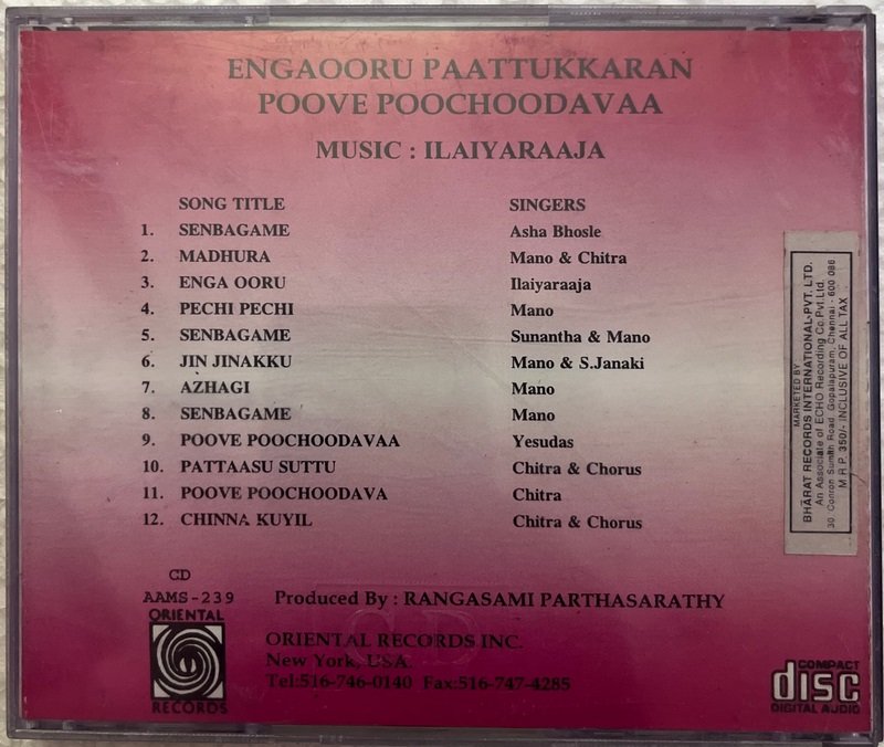 Enga Ooru Paattukaran, Poove Poochoodava Tamil Audio CDs By Ilaiyaraaja USA CD