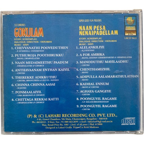 Gokulam, Naan Pesa Nenaipadhellam Tamil Audio CDs By Sirpi