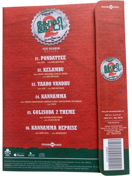 Goli Soda 2 Tamil Audio Cds By Aruna giri