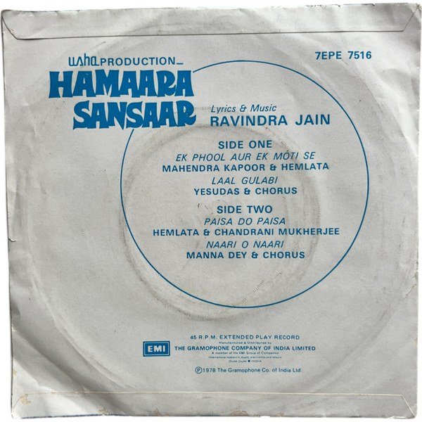 Hamaara Sansar Hindi EP Vinyl Records By Ravindra Jain