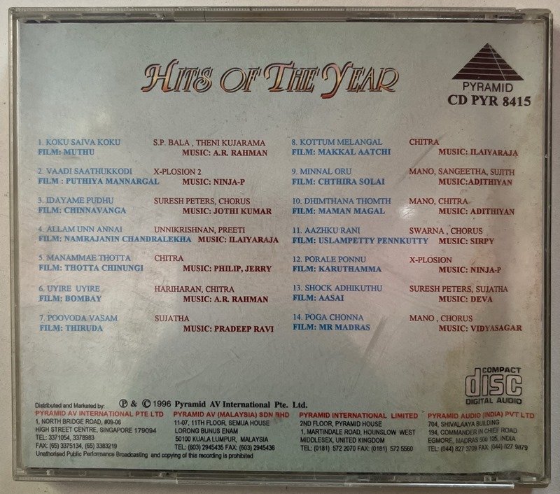 Hits Of The Year Tamil Audio CD Conditions