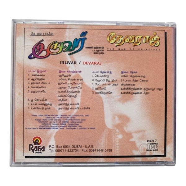 Iruvar, Devaraj Tamil Audio CDs By A.R. Rahman