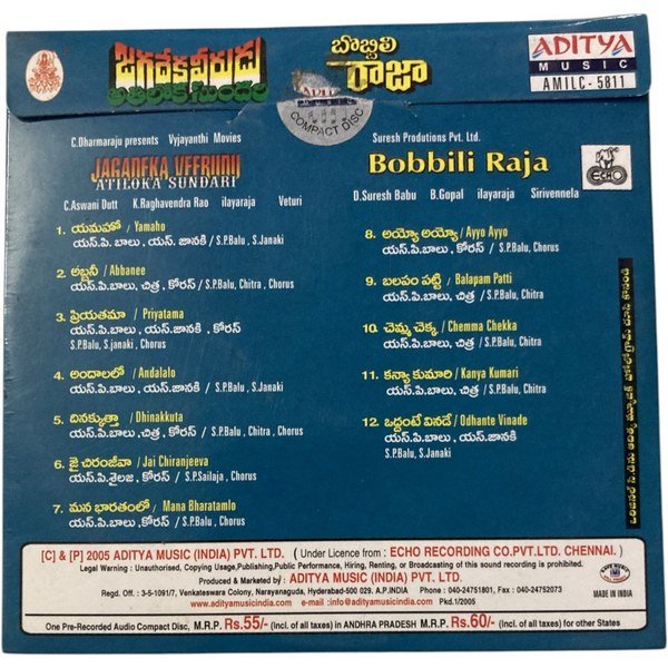 Jagadeka Veerudu Athiloka Sundari / Bobbili Raja Telugu Audio CD – Ilaiyaraaja Hits | Vintage Telugu Movie Songs