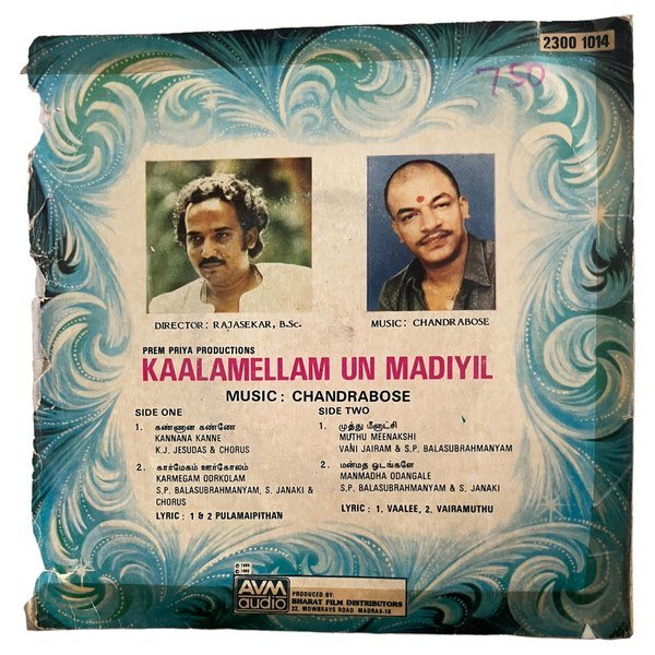 Kaalamellam Un Madiyil Tamil Vinyl EP Records By Chandrabose