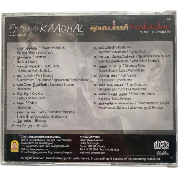 Kaadhal, Karakattakari Tamil Audio Cds By Ilaiyaraaja, Joshva Srithar