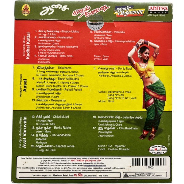 Kadhal Kottai, Aasai, Aval Varuvala Tamil Audio Cds By Deva