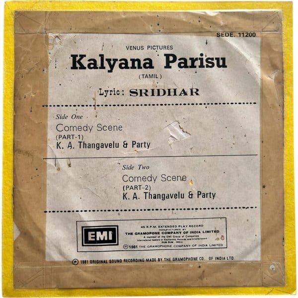 Kalyana Parisu Comedy Scene Tamil EP Vinyl Records