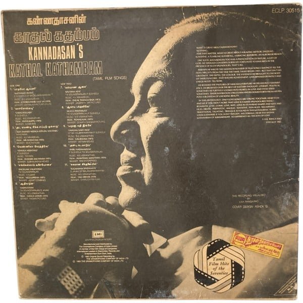 Kannadhasanin Kadhal Kadhambam Tamil LP Vinyl Records Condition: