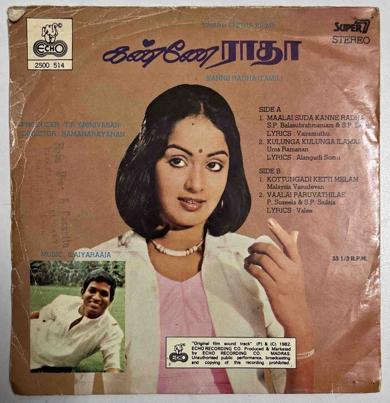 Kanne Radha Tamil EP Vinyl Records By Ilaiyaraaja
