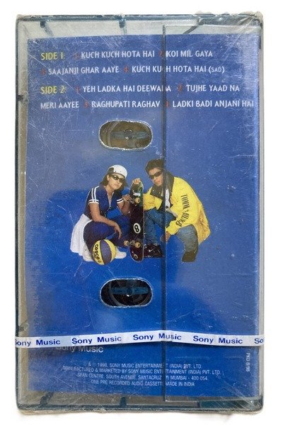 This is an original Hindi movie audio cassette of “Kuch Kuch Hota Hai”, featuring music composed by Jatin–Lalit and directed by Karan Johar. Released under Sony Music, this album is one of the most loved Bollywood soundtracks of the 90s.