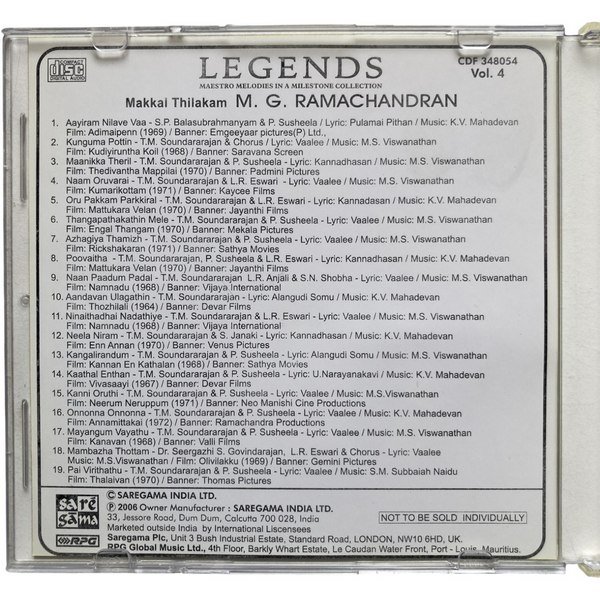 Legends – MGR – Vol 4 Tamil Audio CDs