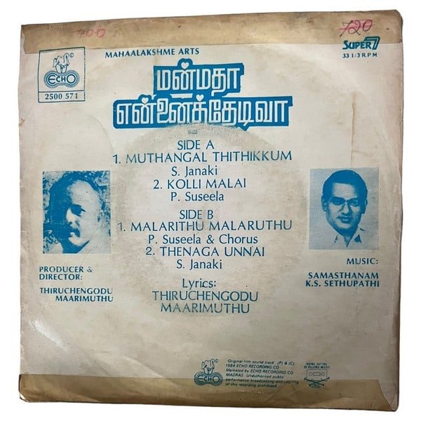 Manmatha Ennai Thedivaa Tamil Vinyl EP Records