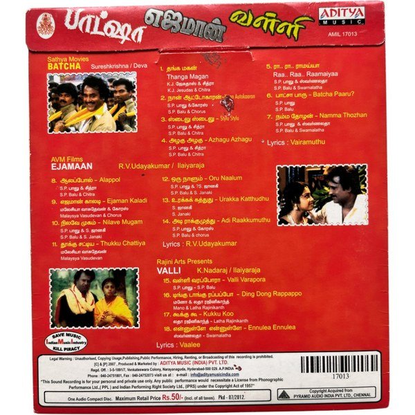 Mannan, Padayappa, Pandiyan Tamil Audio Cds By AR Rahman, Ilaiyaraja