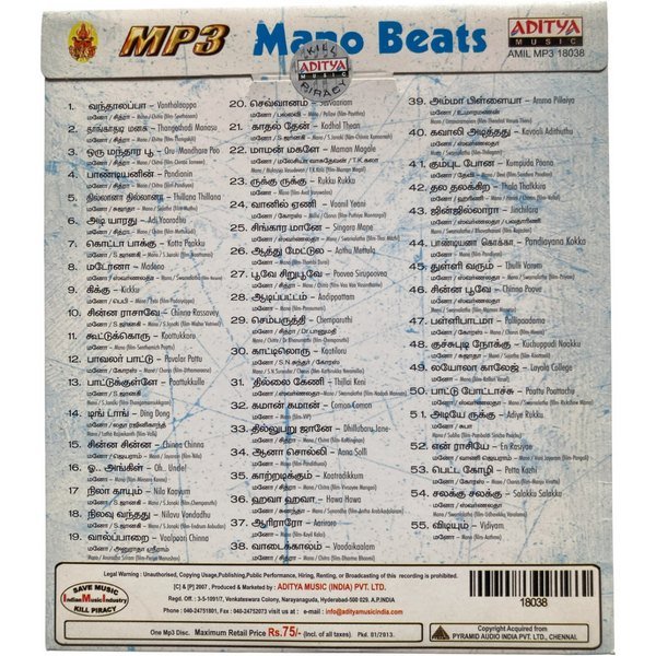 Mano Beats Tamil Mp3  Cds Condition
