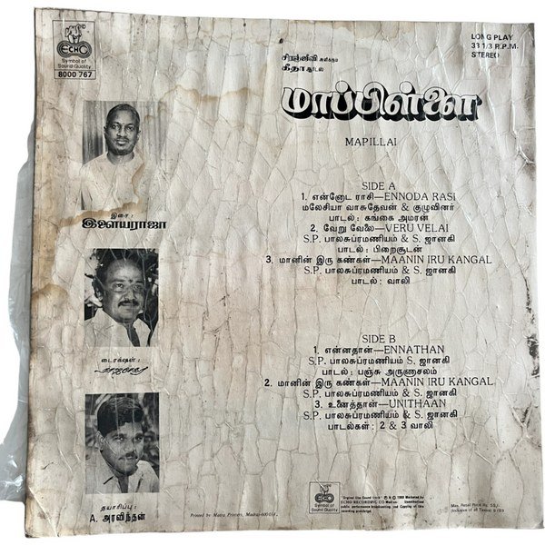 Mappillai Tamil LP Vinyl Records By Ilaiyaraaja