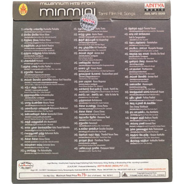 Millennium Hits From MinMini Tamil Mp3 Cds