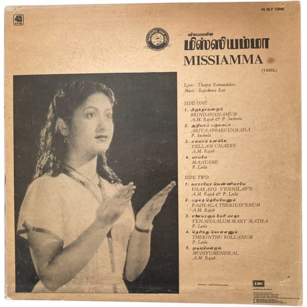 Missiamma Tamil LP Vinyl Records By Rajeswara Rao