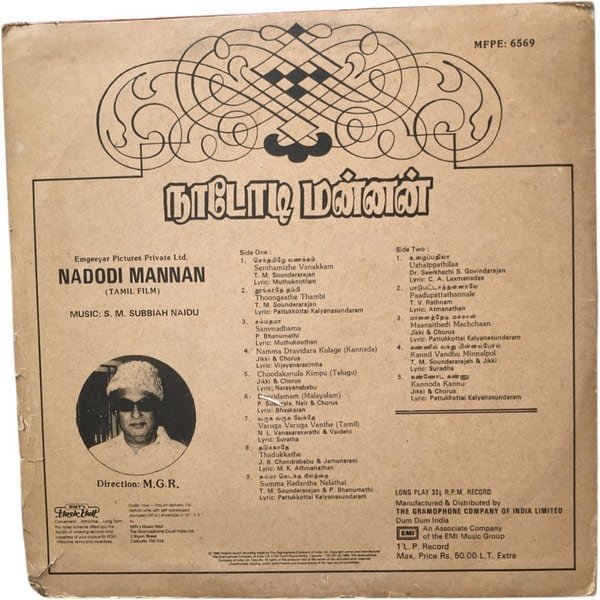 Nadodi Mannan Tamil LP Vinyl Records By SM Subbaiah Naidu
