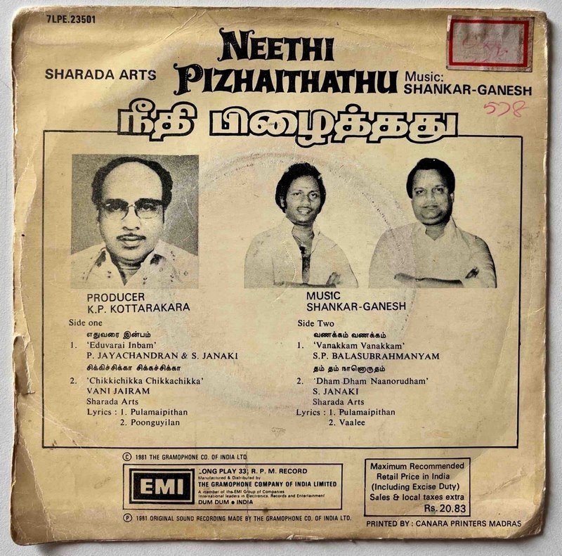Neethi Pizhaithathu Tamil EP Vinyl Records By Shankar Ganesh