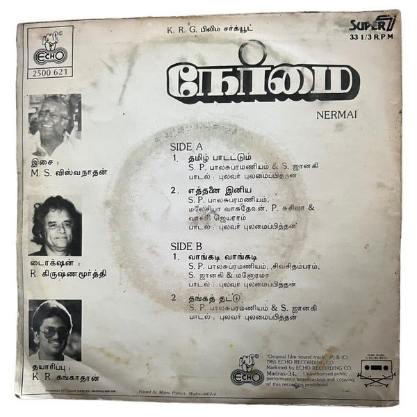 Nermai Tamil Vinyl EP Records By M.S. Viswanathan