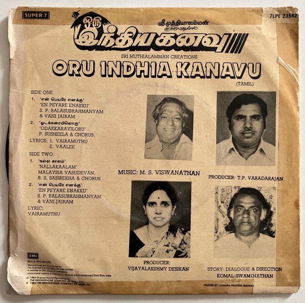 Oru India Kanavu Tamil EP Records By M.S.V