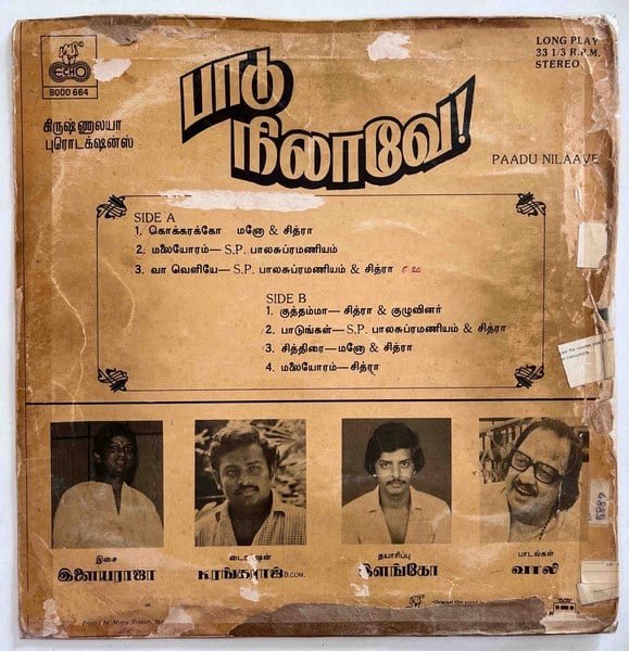 Paadu Nilave Tamil LP Vinyl Records By Ilaiyaraaja