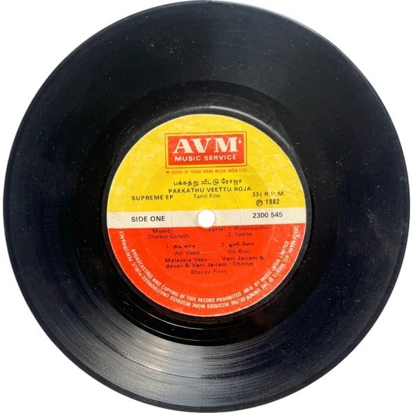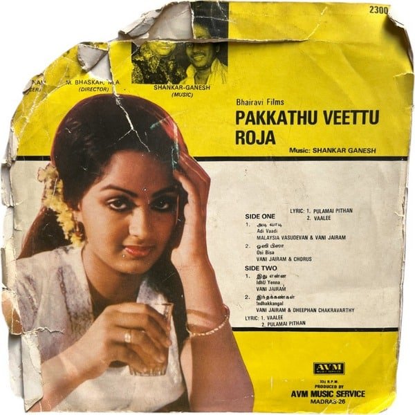 Pakkathu Veettu Roja Tamil EP Vinyl Records By Shankar Ganesh