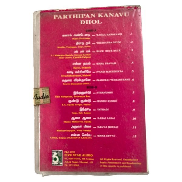 Parthiban Kanavu, Dhool Tamil Tape Cassettes Condition:
