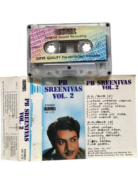 Original Tamil audio cassette of PB Sreenivas Vol. 2 featuring classic hits.