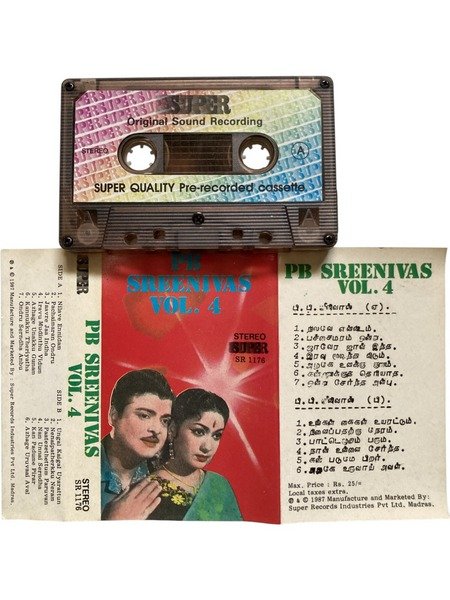 Vintage Tamil audio cassette P.B. Sreenivas (Vol.4) featuring classic melody songs from the golden era. A collectible Super label release.