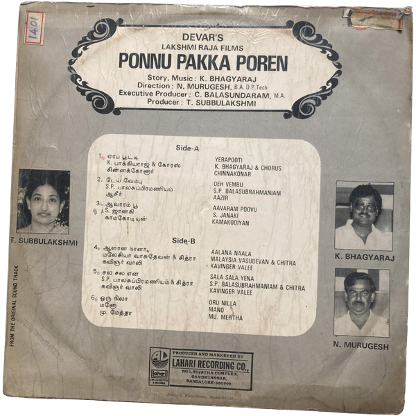Ponnu Pakka Poren Tamil LP Vinyl Records By K Bhagyaraj