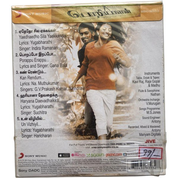 Poriyaalan Tamil Audio Cds By Jones Rupert