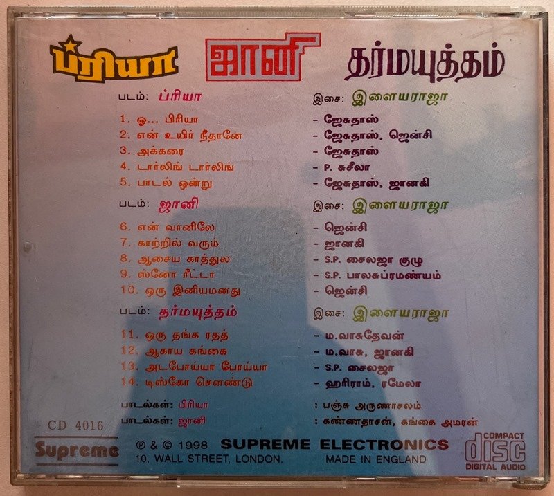 Priya, Johnny, Dharmayutham Tamil Audio CD Conditions