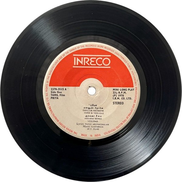 Priya Tamil EP Vinyl Records By Ilaiyaraaja