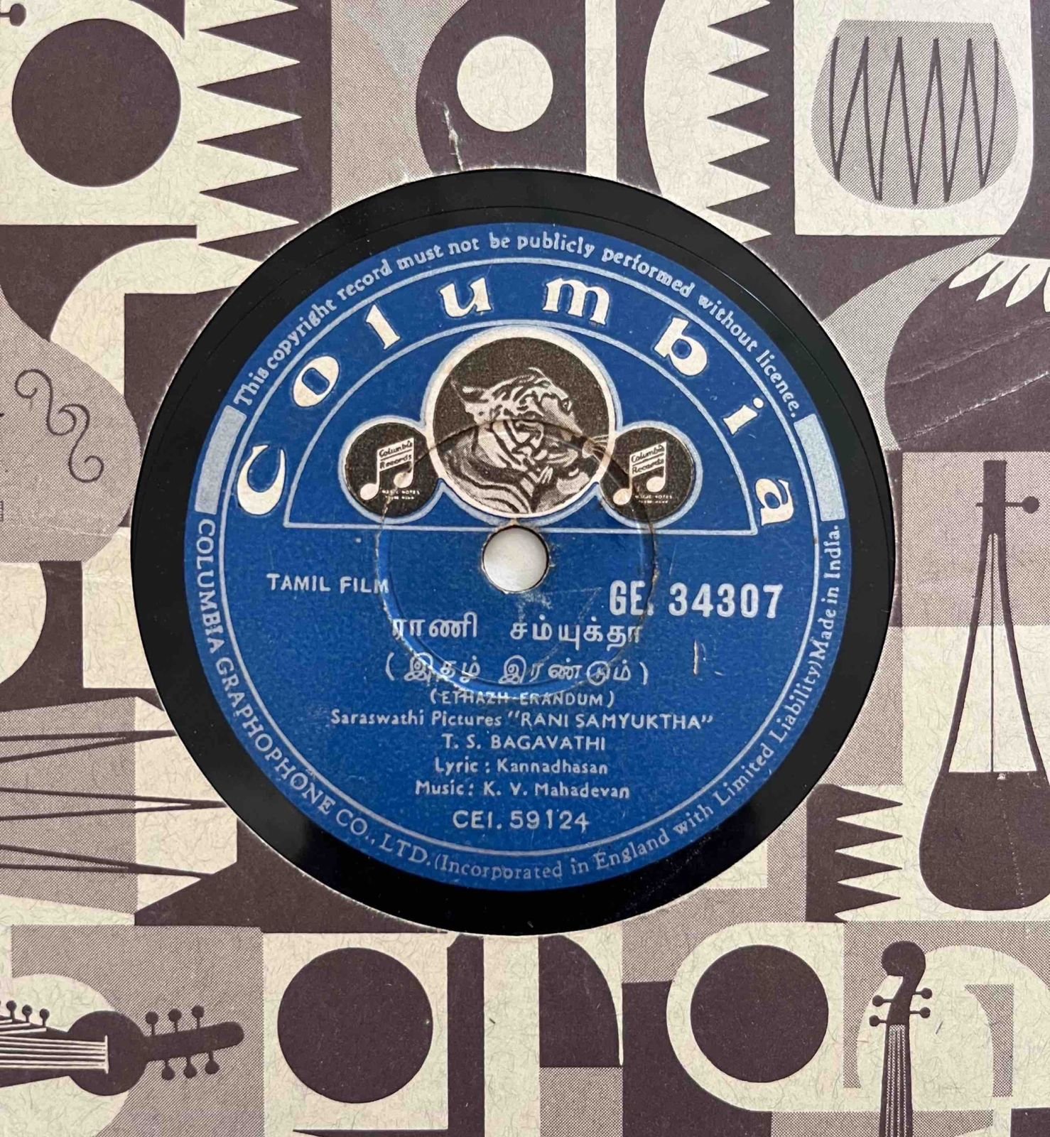 Rani Samyuktha Tamil 78 RPM Records By K.V. Mahadevan