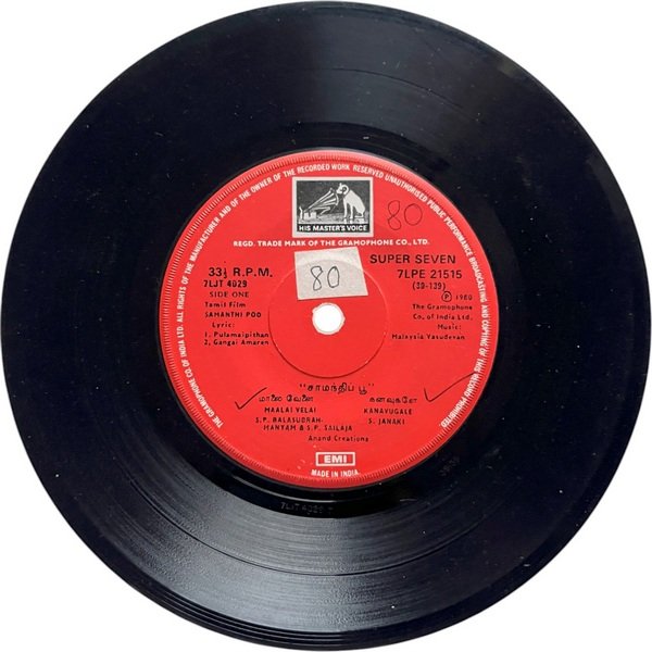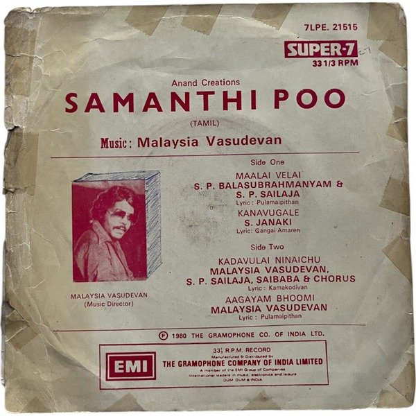 Samanthi Poo Tamil EP Vinyl Records By Malaysia Vasudevan